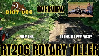 The new RT Series gear driven tillers, designed and built in Commerce, Georgia, can handle your toughest tilling needs. From establishing a garden to putting in a wildlife food plot to incorporating soil amendments for nutrient enhancement, the RT Series tillers from Dirt Dog are built tough to help you get the job done fast. Available in 4-foot, 5-foot and 7-foot tilling widths in both forward and reverse tine rotations, the all-welded steel frame construction houses a side drive gearbox that transfers power to the rotor where 6-blades per flange deliver optimized soil tilling. An adjustable swinging tailgate smooths the tilled soiled leaving a clean finish ready for planting. The RT units are equipped with an innovative, spring-loaded parking stand that makes hitching and unhitching the units a breeze. When you desire optimum tilling performance in a solidly built machine at an affordable price, look no further than the RT Series tiller line from Dirt Dog!